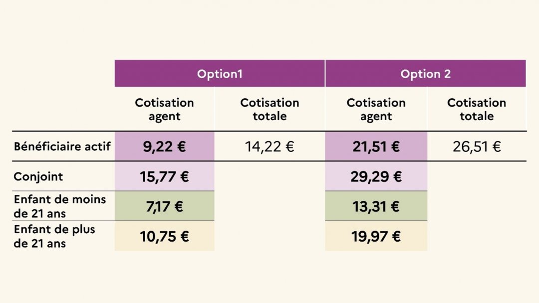 For your information, if you choose optional cover, this also applies to your dependants. These optional benefits are financed by the employer, i.e. the Ministry of the Armed Forces, up to 50% of the employee’s contribution, limited to €5.