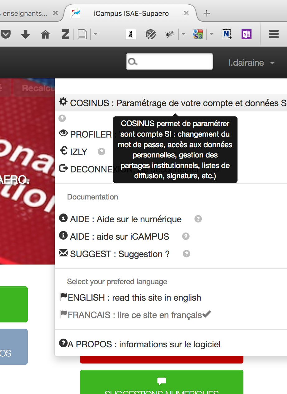 Pour mettre à jour ces informations afin de faire ces liens, il faut simplement compléter les champs associés dans la console système COSINUS (le service permettant notamment de changer son mot de passe ISAE). COSINUS est accessible dans le menu de droite de ICampus.